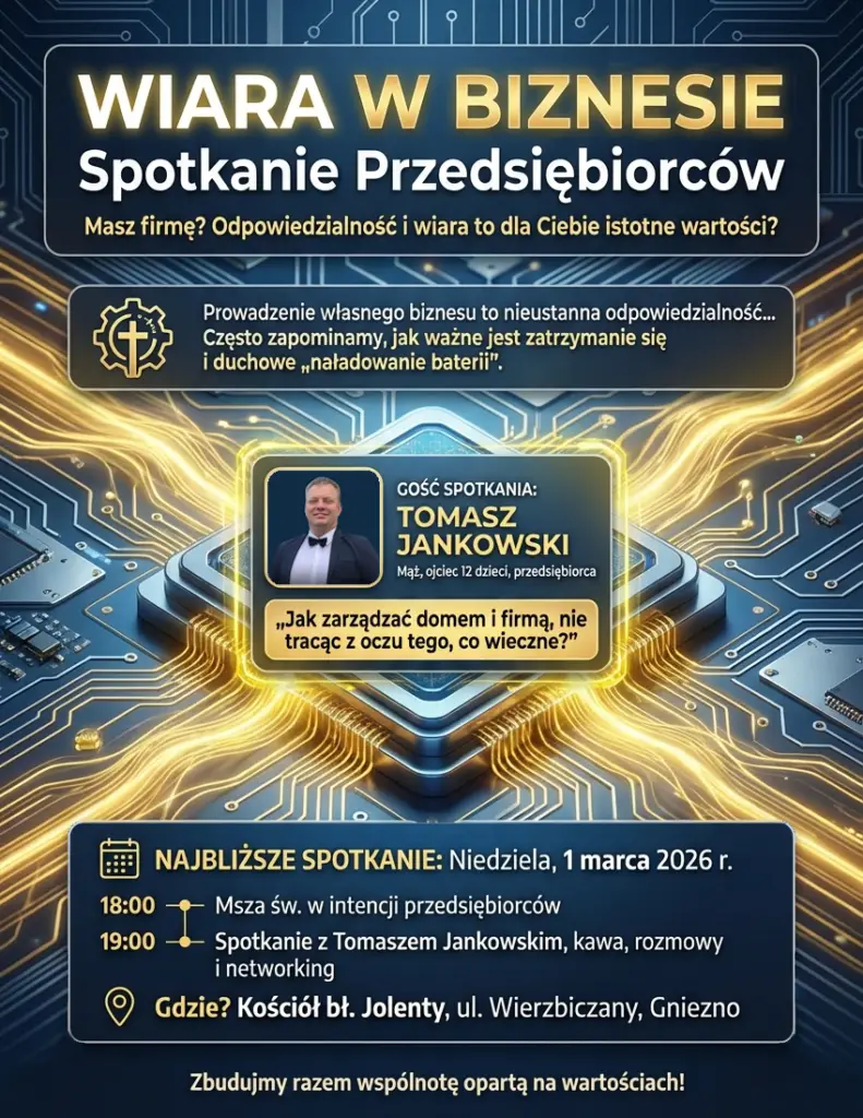 Prowadzisz firmę w Gnieźnie lub okolicach? Jeśli odpowiedzialność i wiara są dla Ciebie fundamentem, to spotkanie jest dla Ciebie.