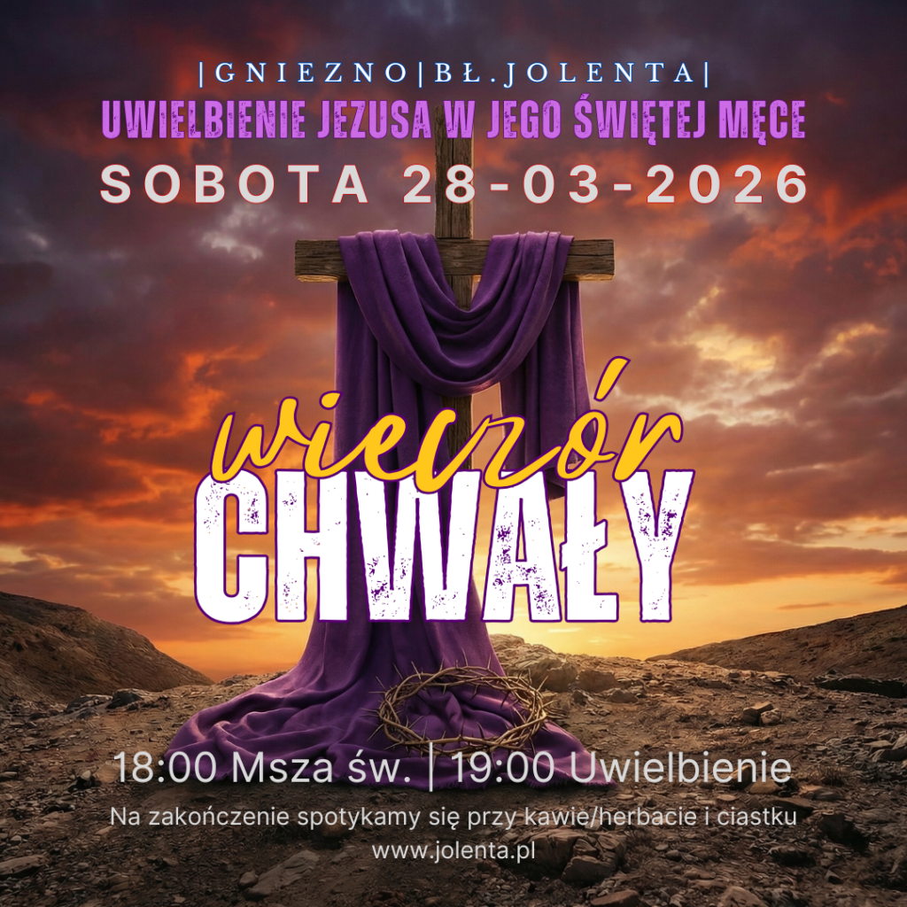 Serdecznie zapraszamy na Wieczór Chwały: „Uwielbienie Jezusa w Jego Świętej Męce”. Najbliższa sobota (28 marca) po mszy św. o godz. 18:00 w salce na piętrze.